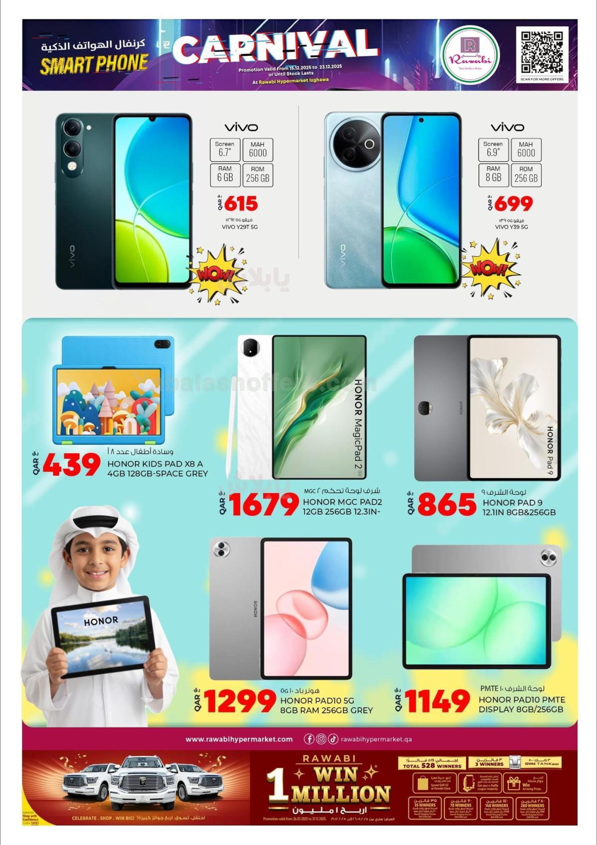 يقدم كتالوج كرنفال الهواتف الذكية من الروابى أحدث العروض والتخفيضات على المنتجات الغذائية والاستهلاكية داخل فروع المتجر. العرض ساري حتى الثلاثاء، ٢٣ ديسمبر ٢٠٢٥.