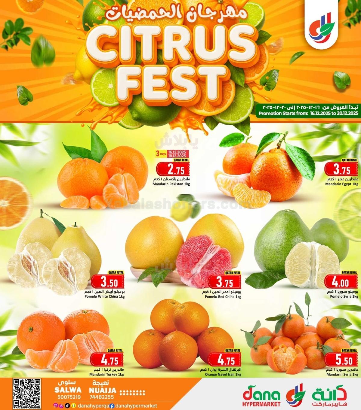 يقدم كتالوج مهرجان الحمضيات من دانة أحدث العروض والتخفيضات على المنتجات الغذائية والاستهلاكية داخل فروع المتجر. العرض ساري حتى السبت، ٢٠ ديسمبر ٢٠٢٥.