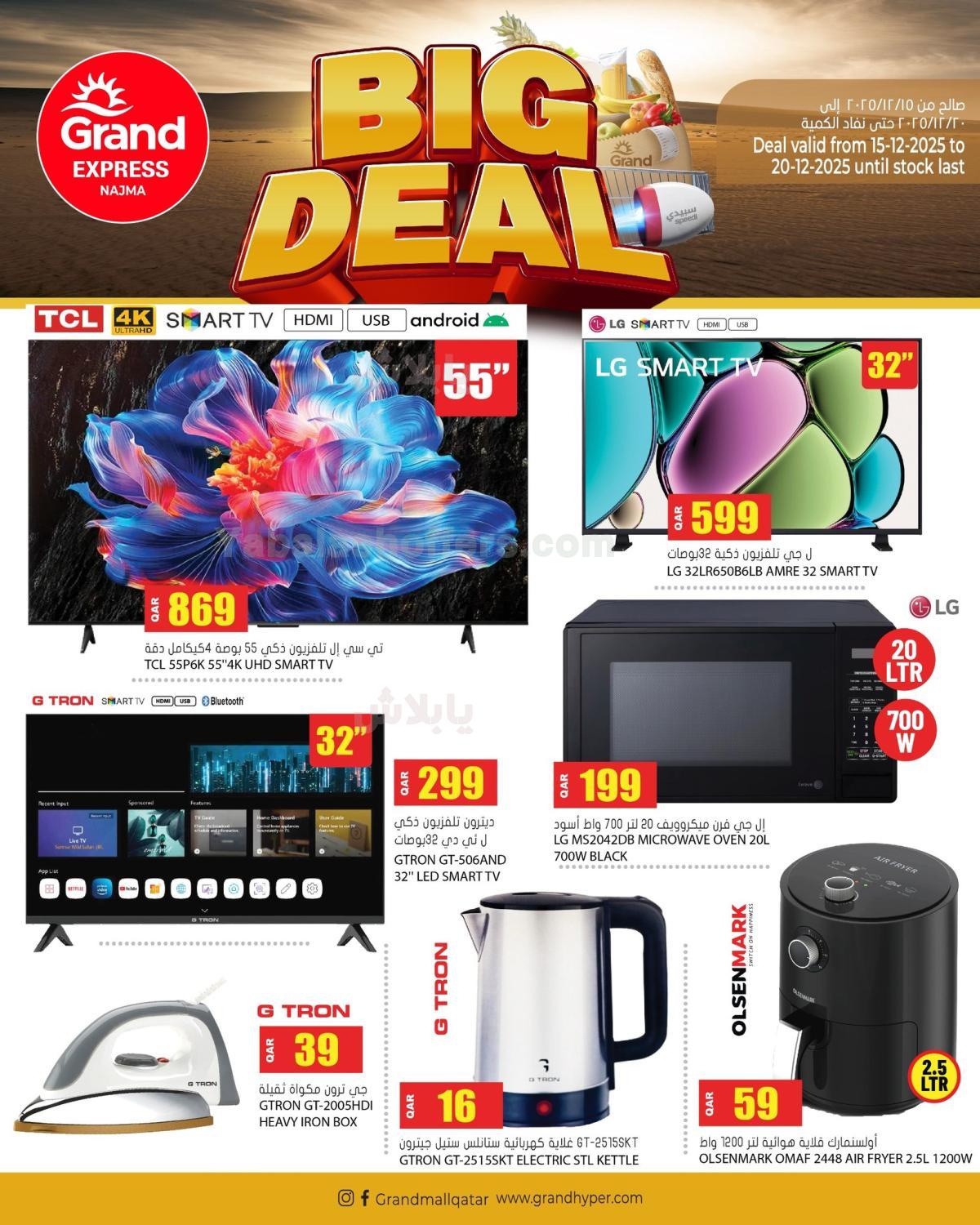 يقدم كتالوج تخفيضات كبري من جراند اكسبريس نجمة أحدث العروض والتخفيضات على المنتجات الغذائية والاستهلاكية داخل فروع المتجر. العرض ساري حتى السبت، ٢٠ ديسمبر ٢٠٢٥.