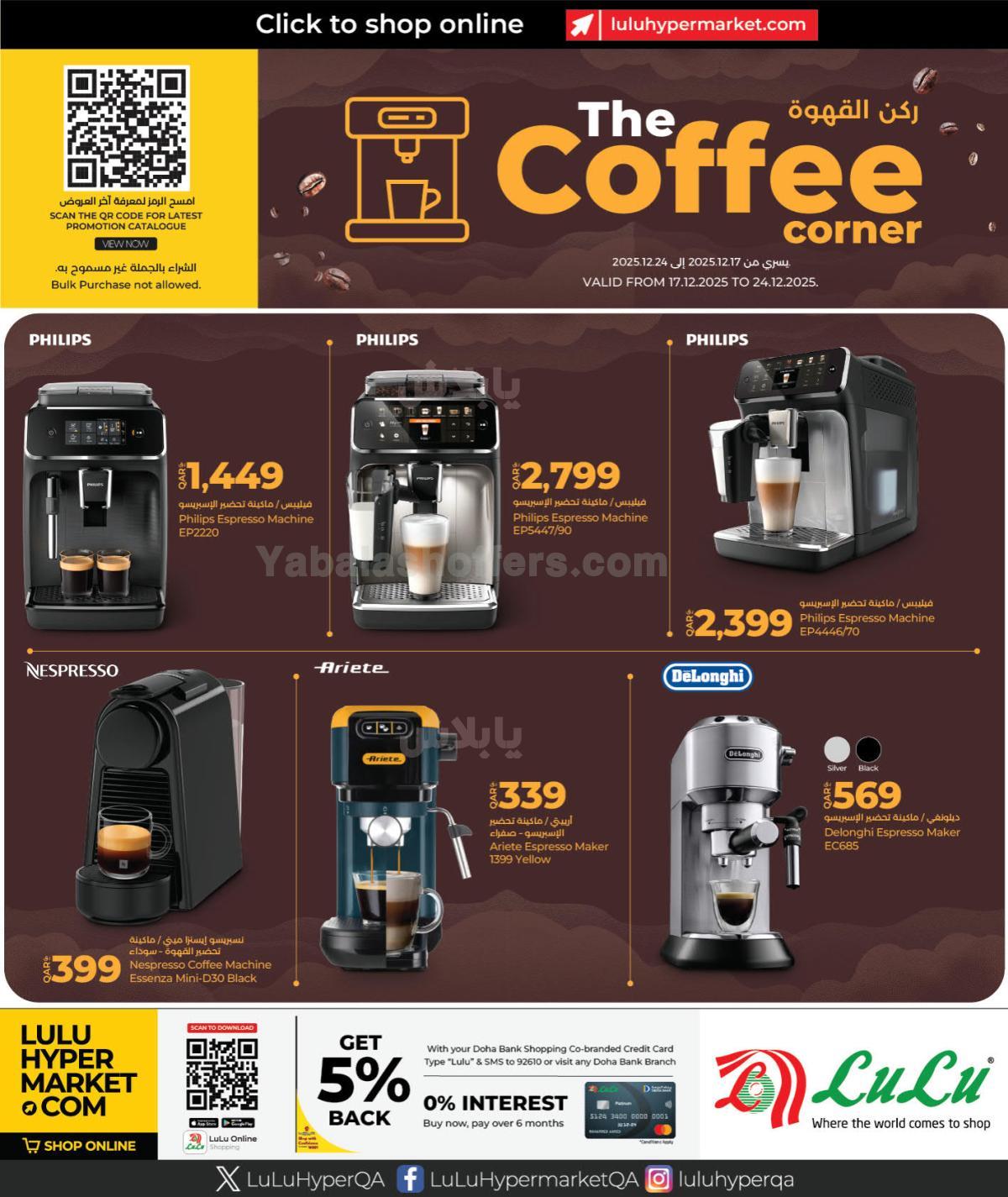 يقدم كتالوج عروض ركن القهوة من لولو أحدث العروض والتخفيضات على المنتجات الغذائية والاستهلاكية داخل فروع المتجر. العرض ساري حتى الأربعاء، ٢٤ ديسمبر ٢٠٢٥.