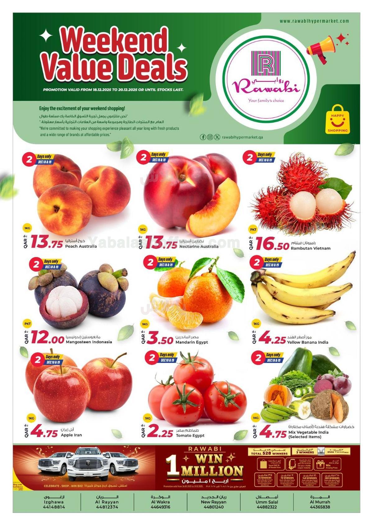 يقدم كتالوج عروض نهاية الاسبوع من الروابى أحدث العروض والتخفيضات على المنتجات الغذائية والاستهلاكية داخل فروع المتجر. العرض ساري حتى السبت، ٢٠ ديسمبر ٢٠٢٥.