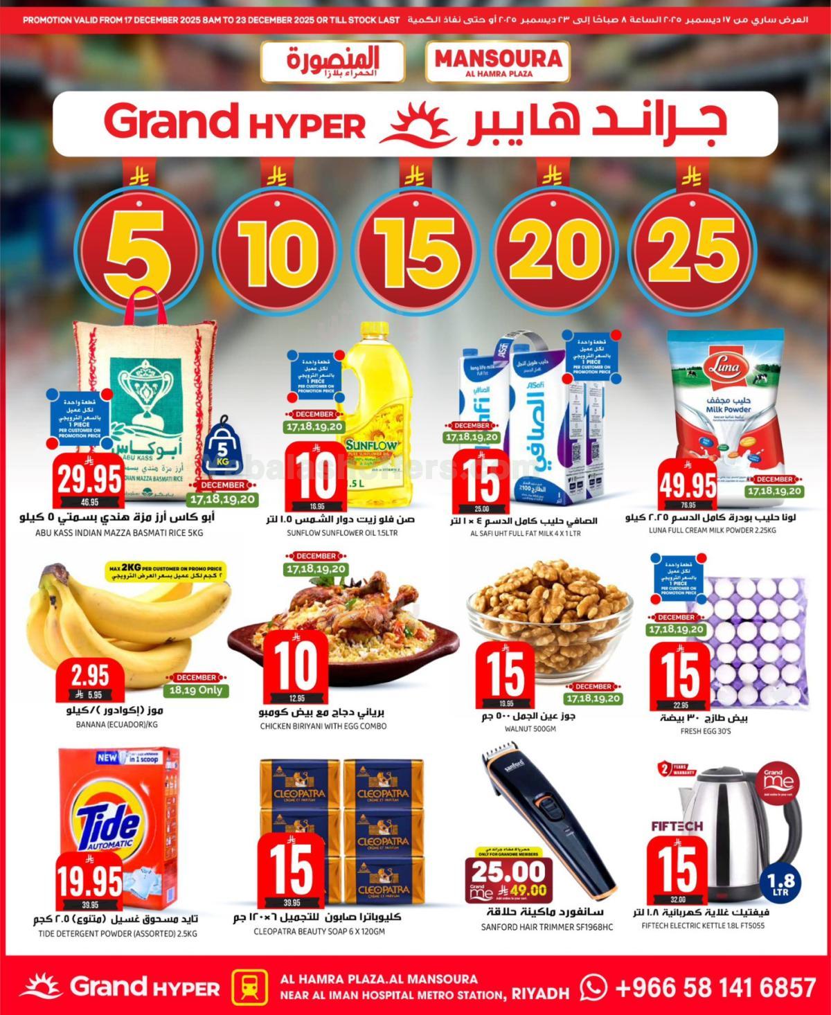 يقدم كتالوج العروض الاسبوعيه من جراند هايبر - المنصورة أحدث العروض والتخفيضات على المنتجات الغذائية والاستهلاكية داخل فروع المتجر. العرض ساري حتى الثلاثاء، ٢٣ ديسمبر ٢٠٢٥.
