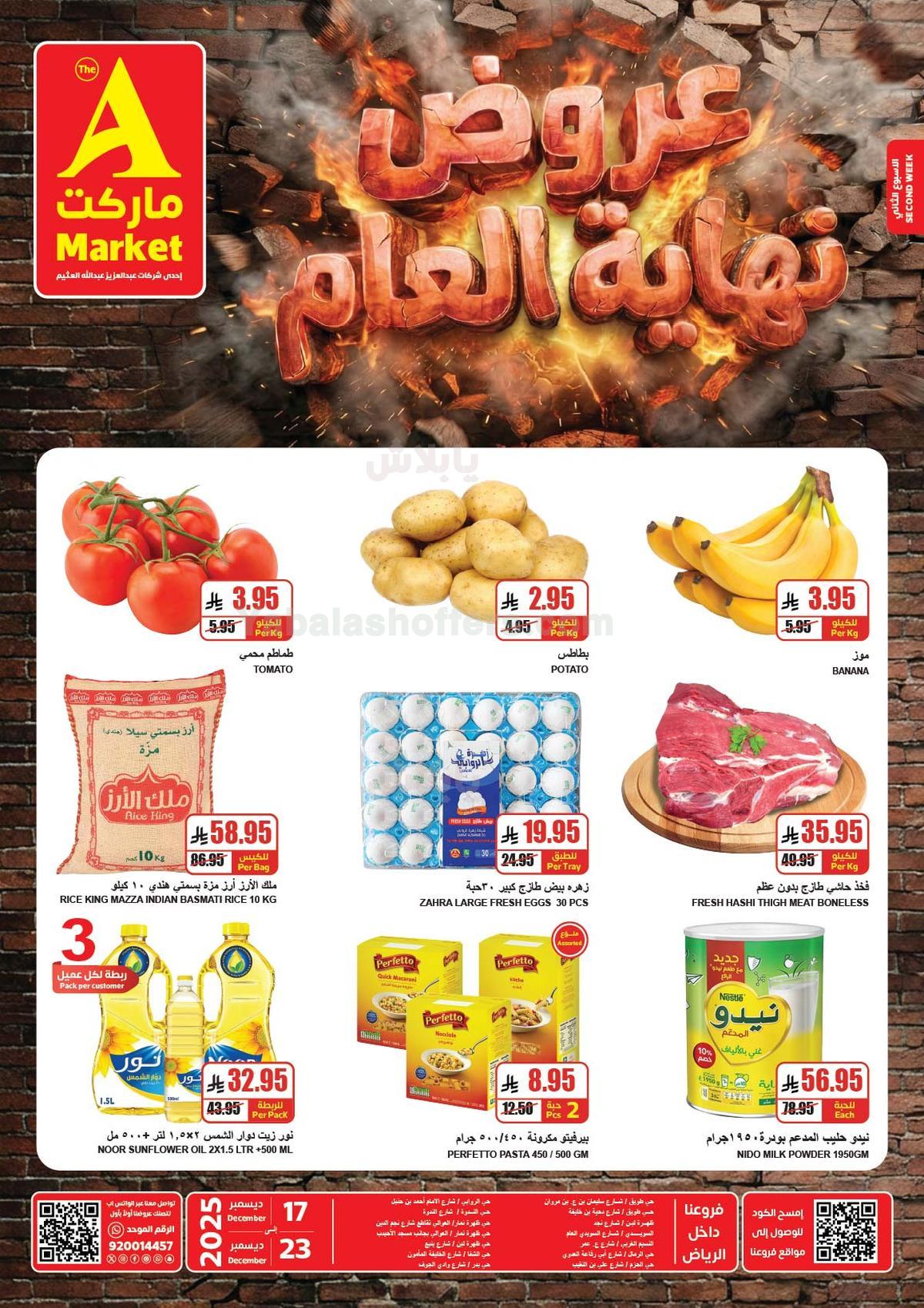 يقدم كتالوج العروض الاسبوعيه من A ماركت أحدث العروض والتخفيضات على المنتجات الغذائية والاستهلاكية داخل فروع المتجر. العرض ساري حتى الثلاثاء، ٢٣ ديسمبر ٢٠٢٥.